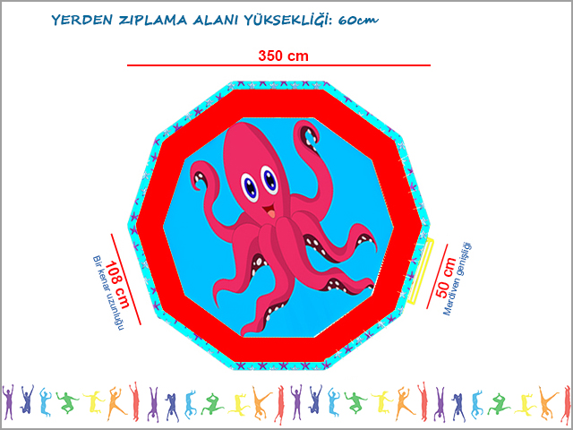 - On Köşe Fileli Tekli Trambolin, iç ve dış mekana uygun ,uzun ömürlü üretilmektedir.