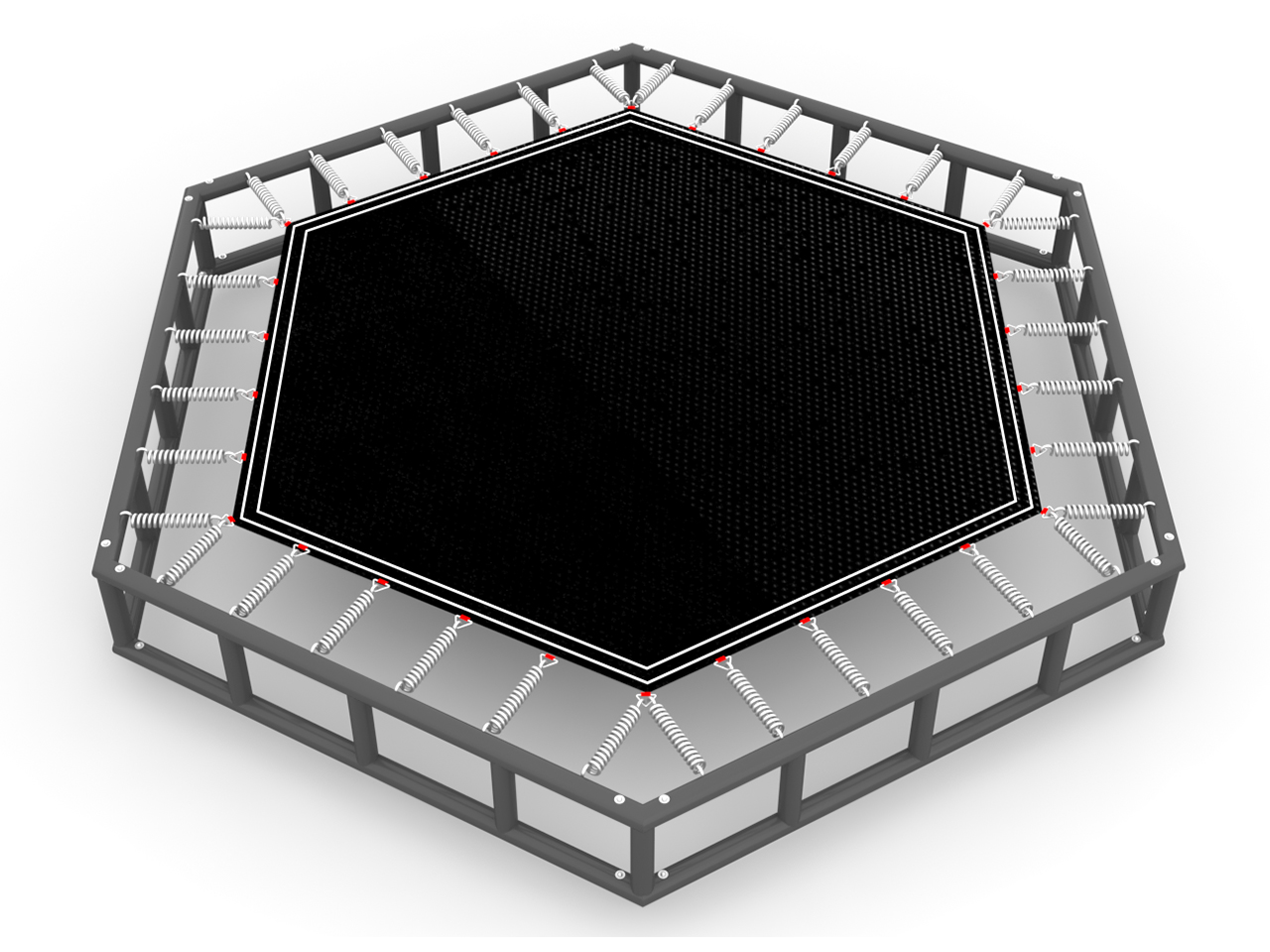 - Bahçe tipi zemin trambolinlerinde kullanılan zıplama ağı 1.sınıf mesh kumaştır.